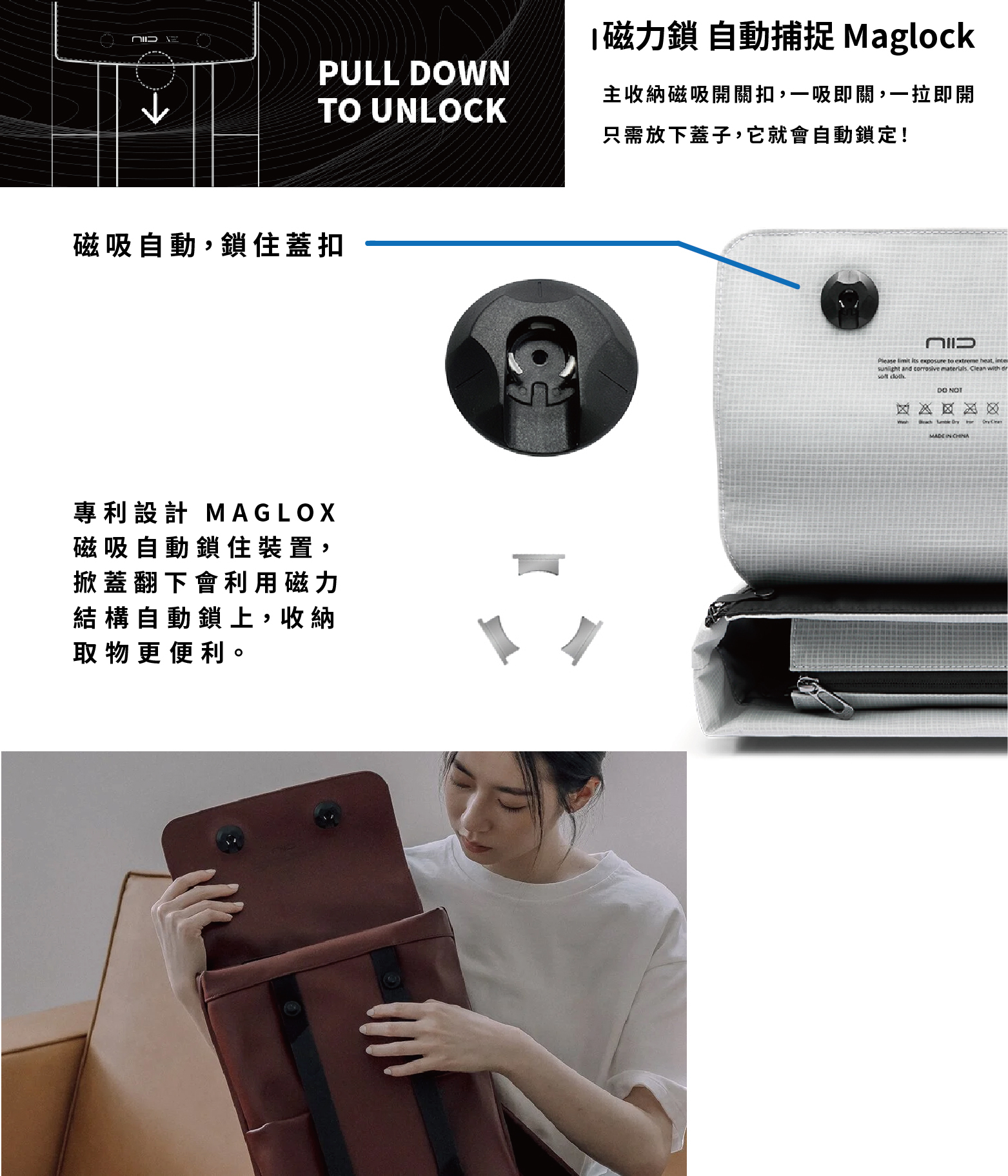■ MagLock 專利自動磁力鎖,自動鎖住蓋扣