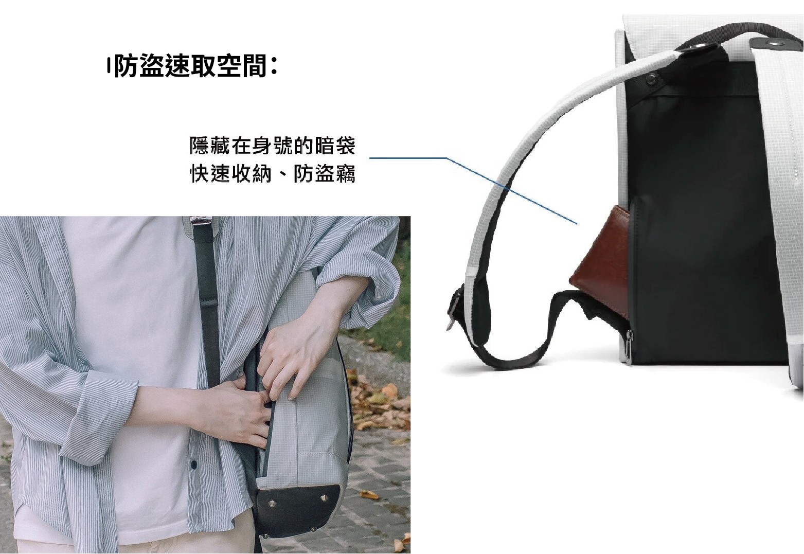 ■ 暗袋設計,拿取方便又防盜