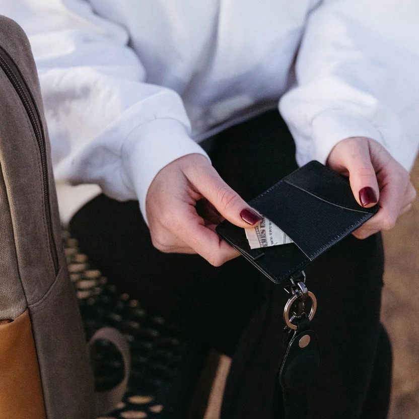 Ari 的設計簡約,適合日常攜帶。一個皮革前袋、一個可存放幾張卡片的中央插槽以及一個可存放現金的鬆緊後背——經過精簡,可以方便地存放必需品,同時又不會增加體積。受我們原始皮夾設計的啟發,它經過縮小,呈現極簡風格,同時提供耐用的帆布繫帶和皮革貼花,增添額外的風格和安全性。