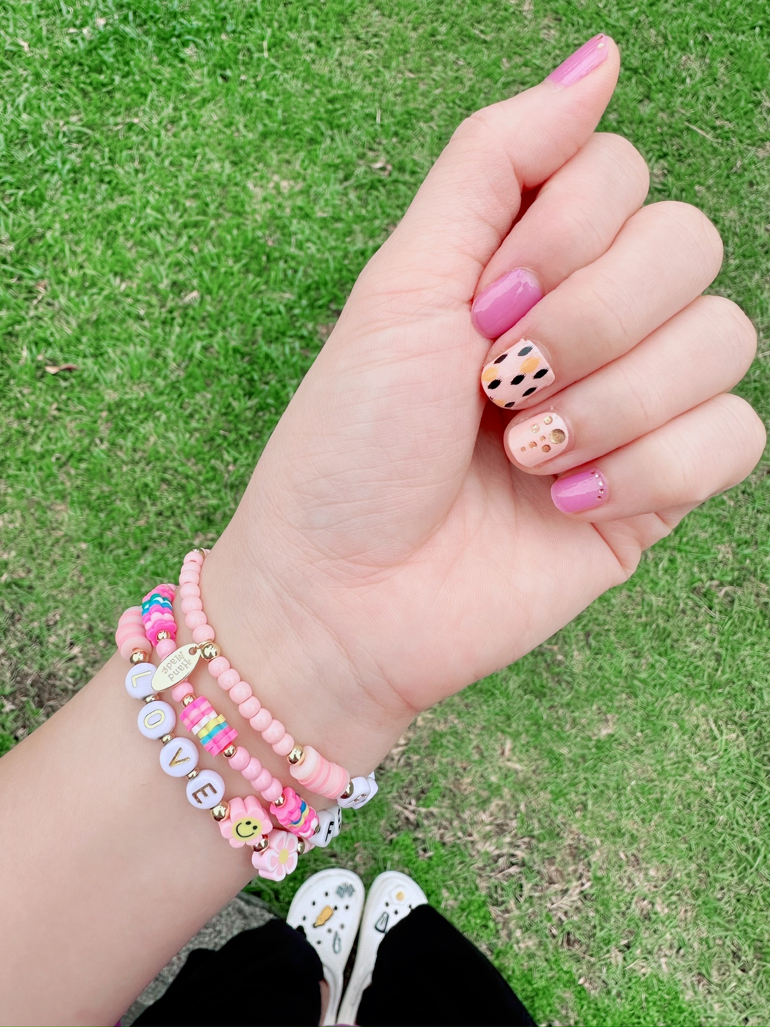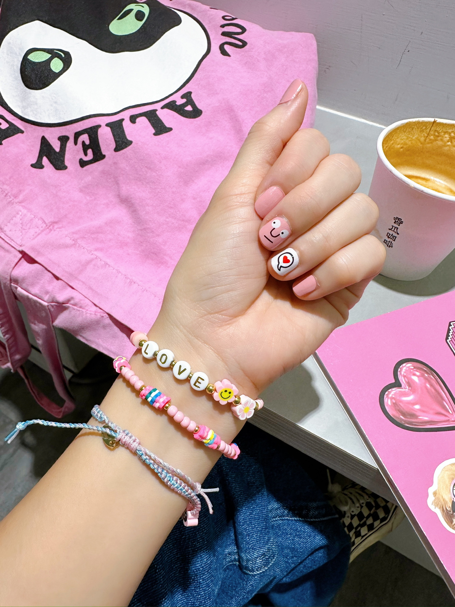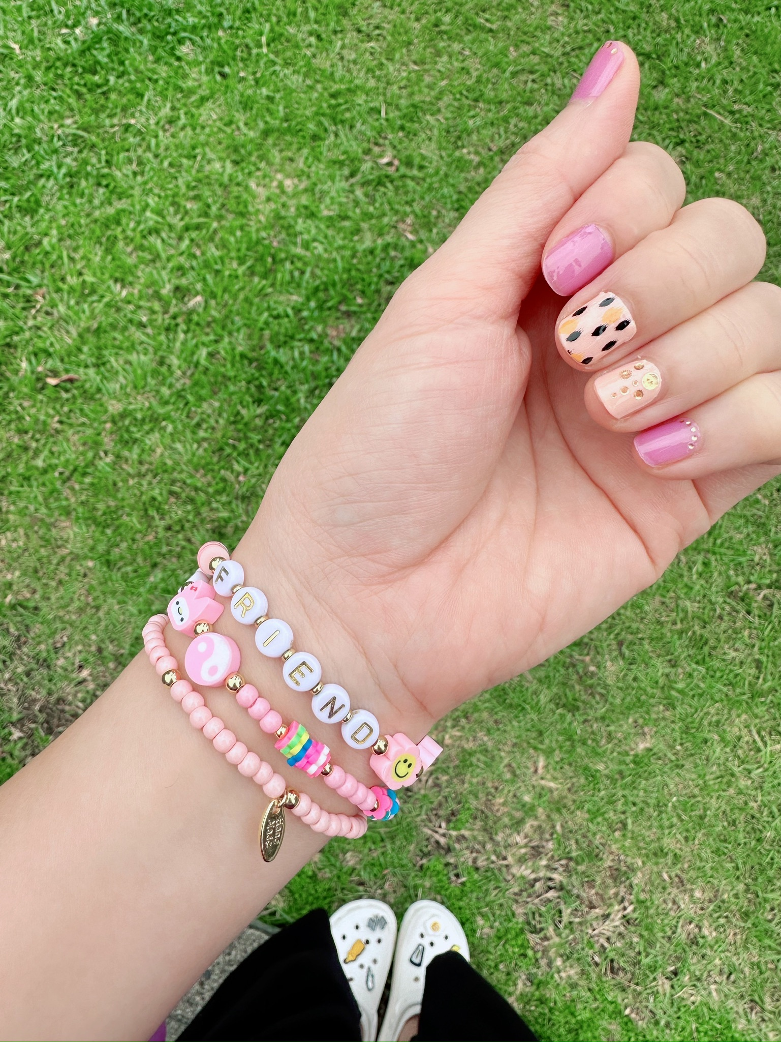 彩度降低的粉嫩,絕對是日常穿搭的好夥伴。有2款,一款乍看就是條淡粉手環,細看那可愛的小花還是個笑臉,溫柔的笑著,爲你打氣:今天又會是美好的一天。另款是色彩增加的粉紅小兔,配上太極符號,陰與陽不矛盾,就像成熟與可愛,誰說不能並行。自選1-8個字母,訂製專屬於你的粉粉嫩嫩。