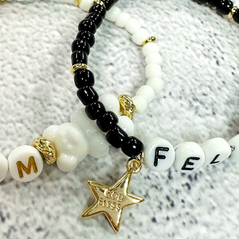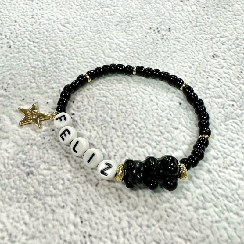 自選1-8個英文字母。可愛的小熊軟糖看著心情就好,配上祝福的星星吊飾,願你有個美好的一天。