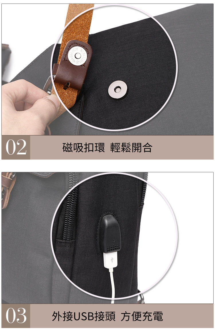 • 超纖皮革搭配16安洗水帆布,質感滿分