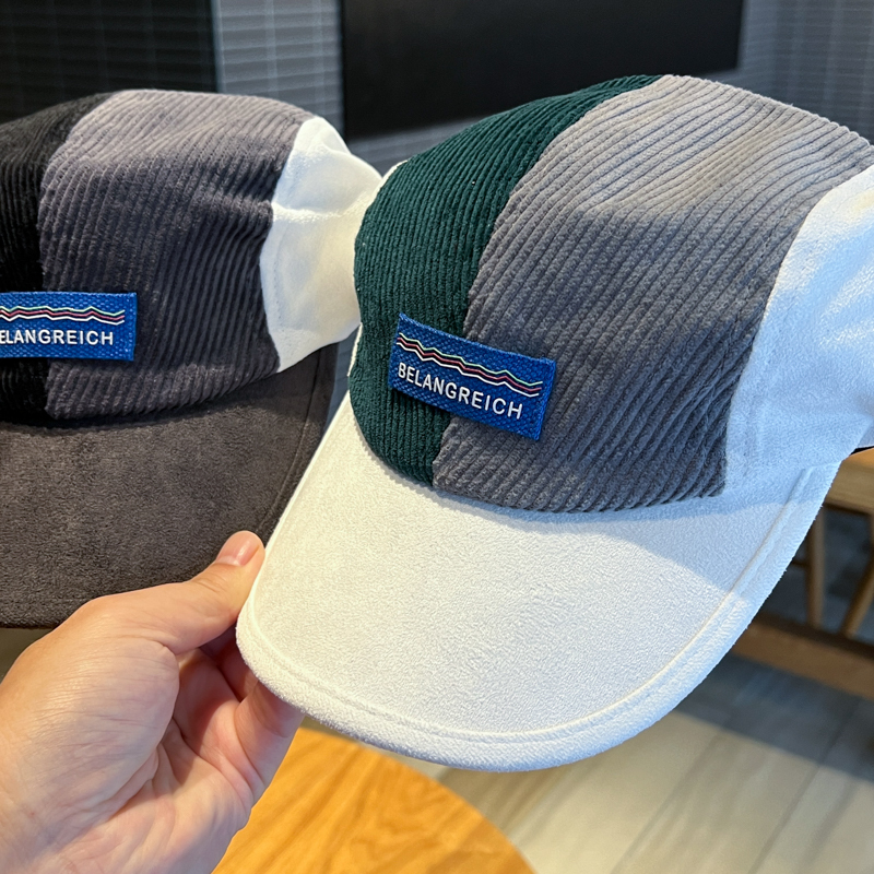 Piccoloo|街頭風燈芯絨撞色保暖棒球帽/老帽 鴨舌帽 山系風 麂皮絨布