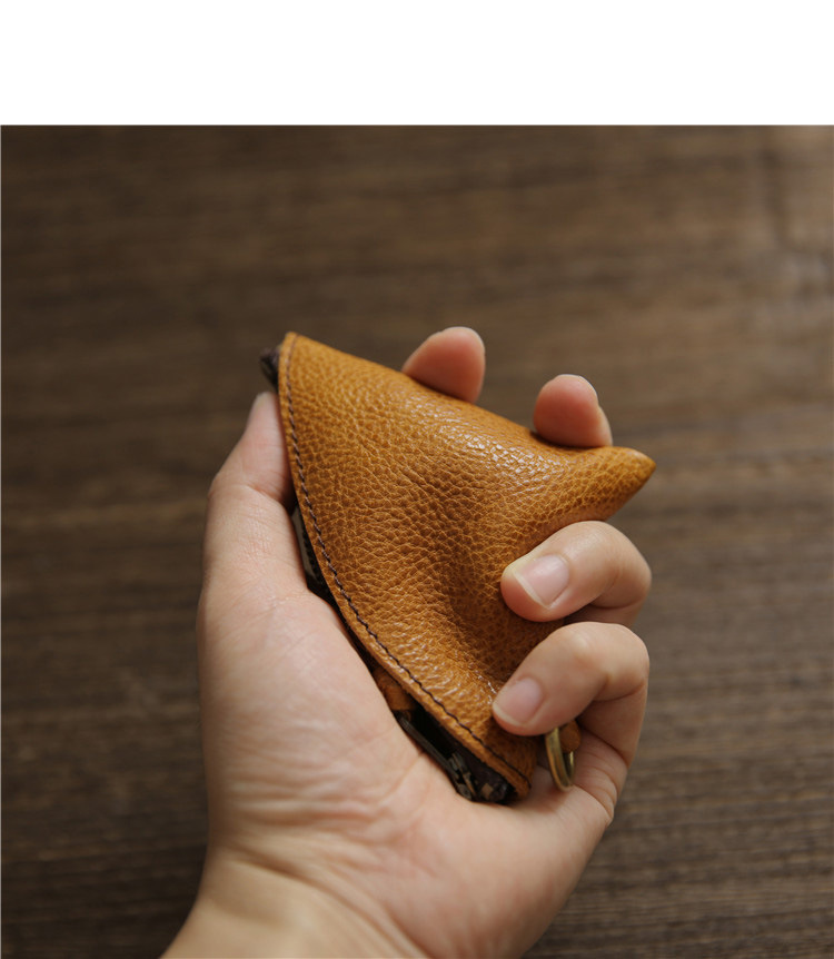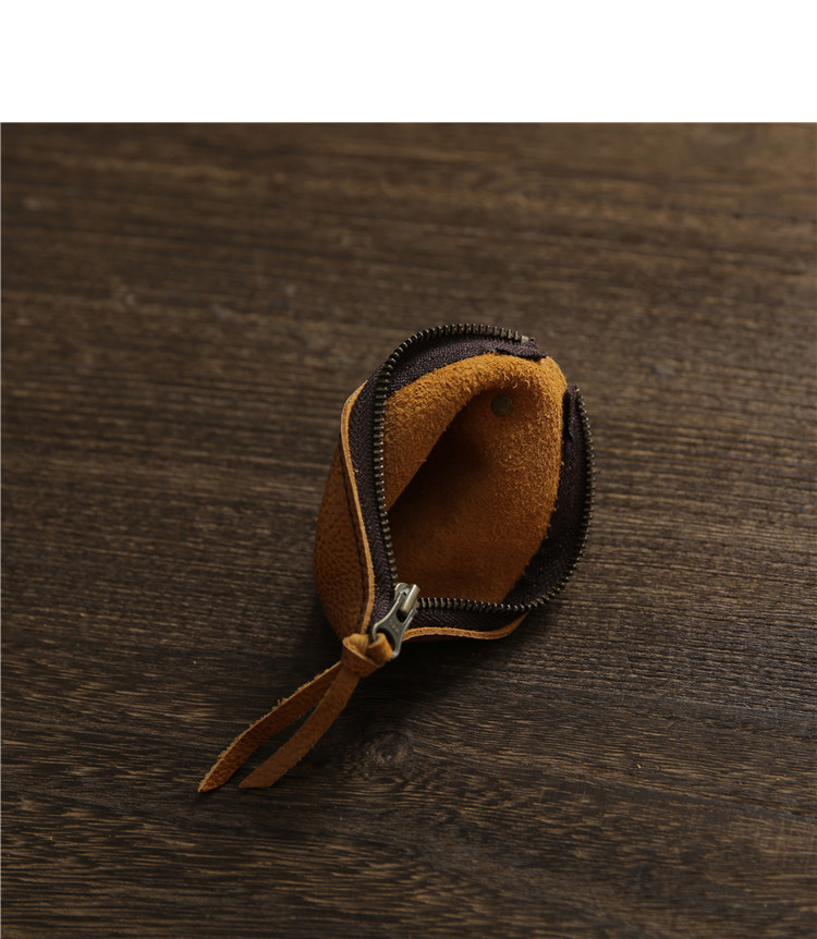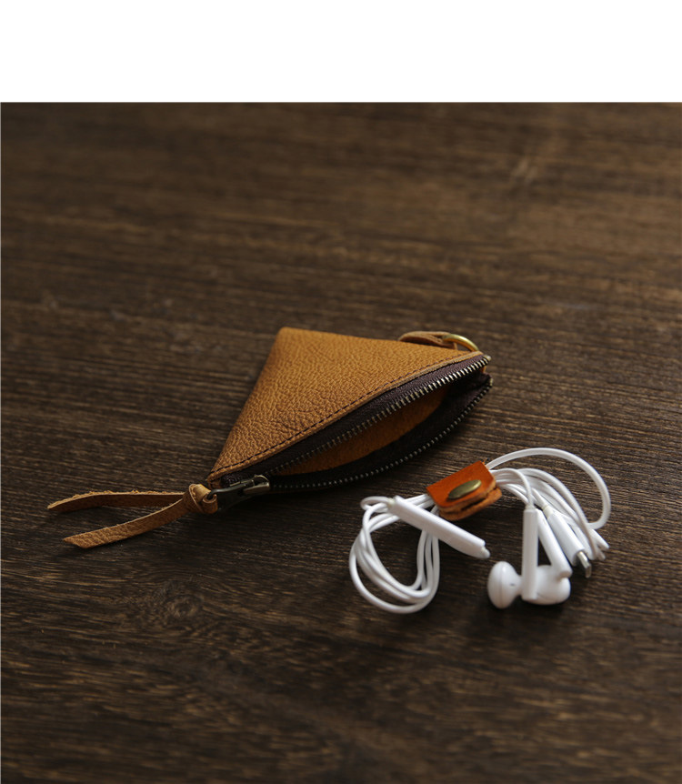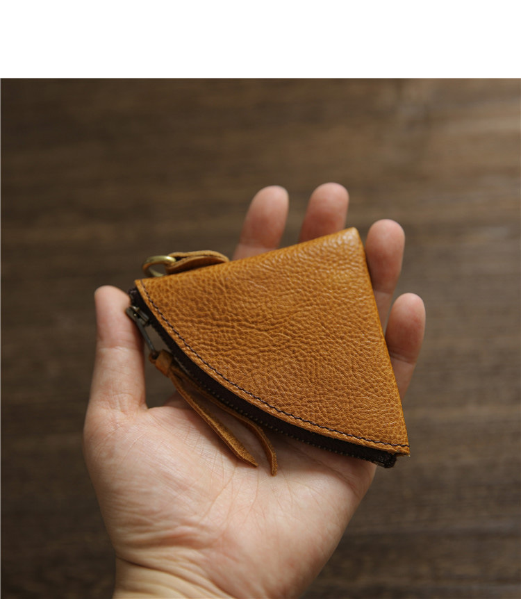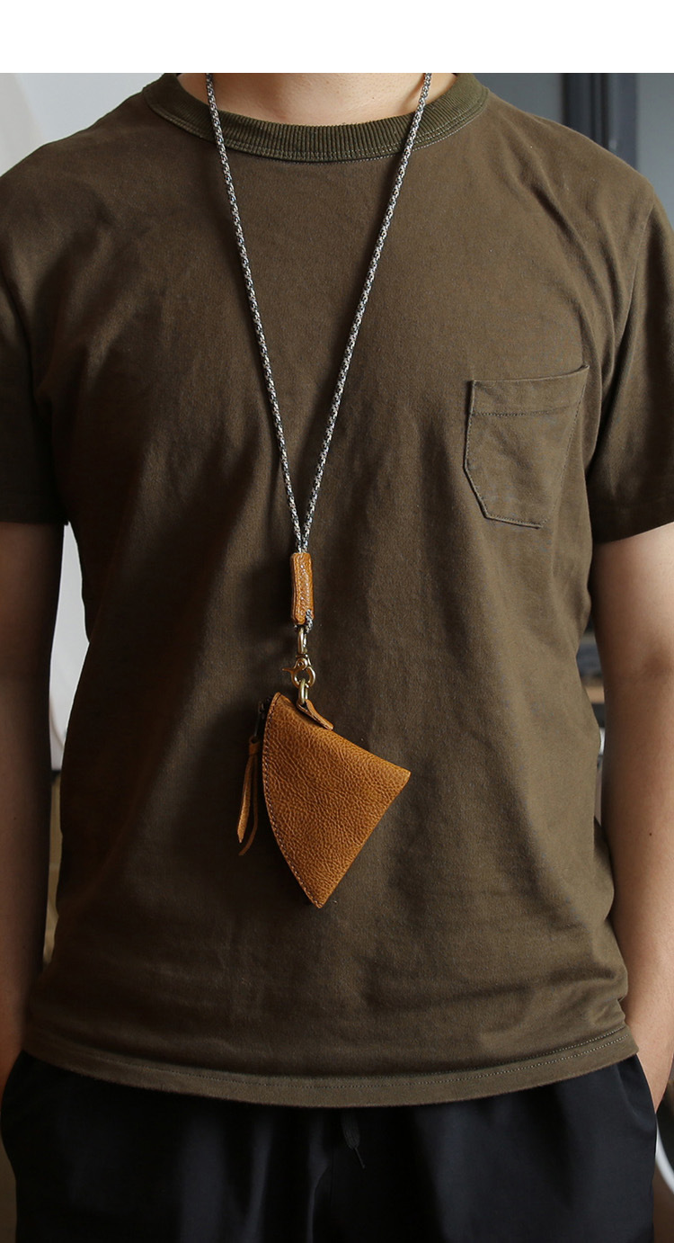 Piccoloo│ 仿古植鞣牛皮掛繩三角零錢小包