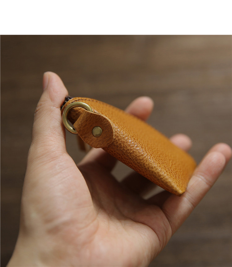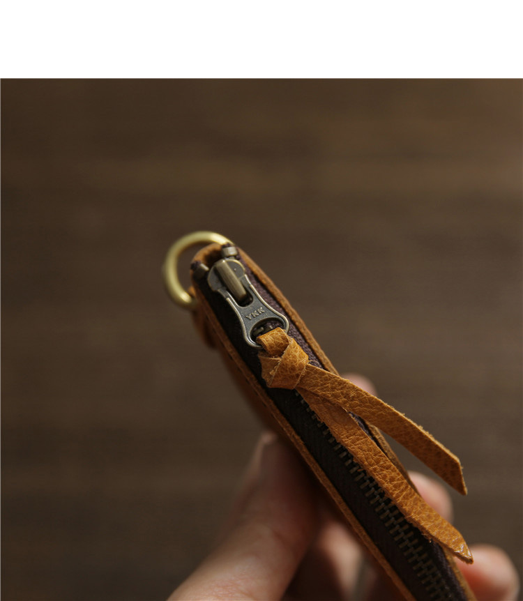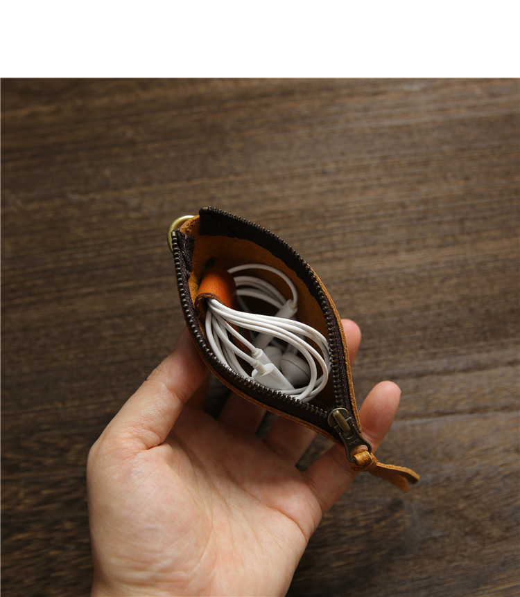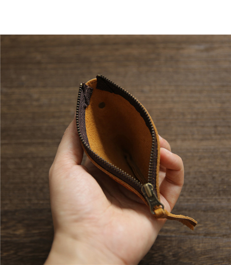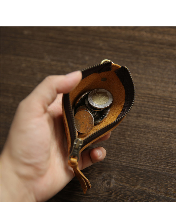 Piccoloo│ 仿古植鞣牛皮掛繩三角零錢小包