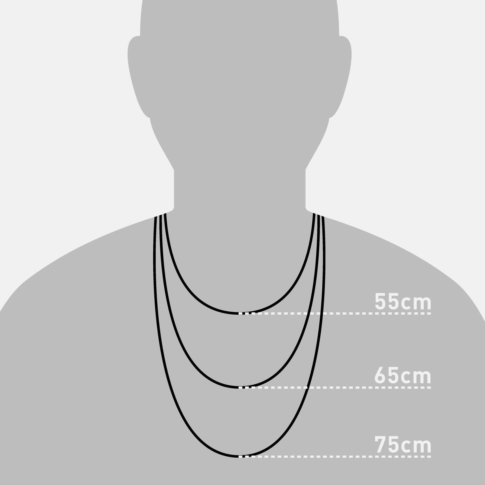 65cm 的戴在脖子上的長度約為 25 cm (因每個人體型厚度不同會有差異)